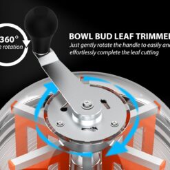 Con la peladora de 33cm de diámetro podremos deshacernos de las hojas de nuestros cogollos como si las hubiéramos cortado con las tijeras, pero con la ley del mínimo esfuerzo girando simplemente una manivela.